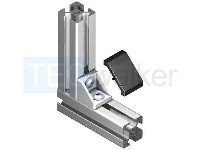 Winkelabdeckkappe 8 Typ B 30x30DatenArtikelnummer: Baureihe: Nut 8 Material: PA-GF schwarz Maße: 28 x 27,4 x 5,2 Einheit: Stk. Gewicht: 0,006 Kg File Download Hinweis Die Winkelabdeckkappe 30 Typ B schwarz dient als Abschlusskappe des Alu-Winkels mit der Artikelnummer S208W30A und überzeugt nicht nur optisch, sondern schützt insbesondere vor Verschmutzung. Nach Montage des Alu-Winkels mittels Schrauben und Hammermuttern wird abschliessend die Winkelabdeckkappe aufgedrückt und ist durch ihre konischen Stege unverlierbar gesichert. Beim Winkelsatz mit der Artikelnummer S208WS30A ist die Kappe nicht im Lieferumfang enthalten Preise Sie sind (bitte wählen)