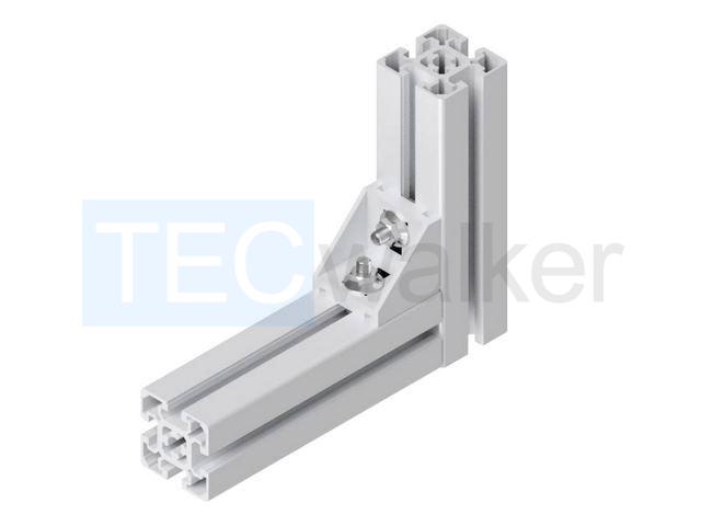 Winkel 10 50x50DatenArtikelnummer: Baureihe: Nut 10 Material: Aluminiumdruckguss Maße: 46 x 46 x 48 Einheit: Stk. Gewicht: 0,071 Kg File Download Hinweis Der Winkel 50x50 aus Alu-Druckguss wird zur stabilen, bearbeitungslosen 90°-Verbindung zweier Profile der Baureihe 10 in Raster 50 eingesetzt. Die Führungsnasen auf der Unterseite lassen sich ausbrechen. Unter der Artikelnummer S210WS5050 ist der Winkel mit je 2 Hammerkopfschrauben und Bundmuttern auch als Satz erhältlich. Der Winkel lässt sich mit der Abdeckkappe S210WAK50 schliessen Preise Sie sind (bitte wählen)