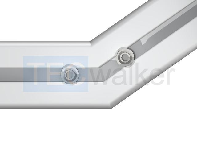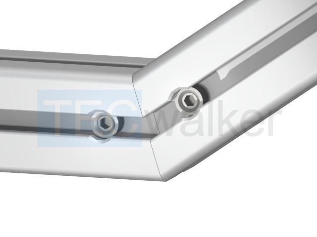 Schnellspannverbinder 8 Typ B biegbarDatenArtikelnummer: Baureihe: Nut 8 Material: ST verzinkt Maße: 70 x 8 Einheit: Stk. Gewicht: 0,036 Kg File Download Hinweis Schnellspannverbinder biegbar Typ B für Profile im Raster 30 werden für Stoß-Verbindungen unter beliebigen Winkel eingesetzt. In beiden Profilabschnitten müssen zuerst im Abstand von 19mm zur Schnittfläche je eine Bohrung mit dem Durchmesser 11mm eingebracht werden, in welche dann die beiden Gehäuse eingelegt werden. Anschliessend wird der Bolzen über die jeweilige Kernbohrung der beiden Profilabschnitte in beiden Gehäusen eingeführt. Durch Anziehen der jeweiligen Madenschrauben wird eine Spannung erzeugt. Zur einfacheren Montage sollte vor der Montage der Bolzen an seinem Dünnschaft auf die gewünschte Gradzahl gebogen werden Preise Sie sind (bitte wählen)